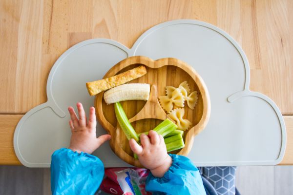 Prepárate, porque su lugar en la mesa será una mezcla de alimentos que muchas veces acabarán debajo de su silla. Utiliza platos de plástico libres de bisfenoles, y por ahora no necesita cubiertos.